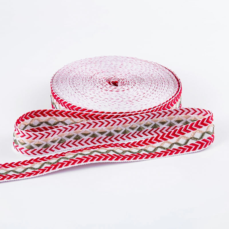 Двусторонняя жаккардовая лента создает изысканные узоры с обеих сторон, создавая детализированный трехмерный эффект и демонстрируя исключительное мастерство. Импортная нейлоновая пряжа и экологически чистые красители в сочетании с современными компьютеризированными жаккардовыми ткацкими станками, процессами крашения и отделки обеспечивают насыщенный цвет, деликатное прикосновение и превосходную устойчивость к деформации.